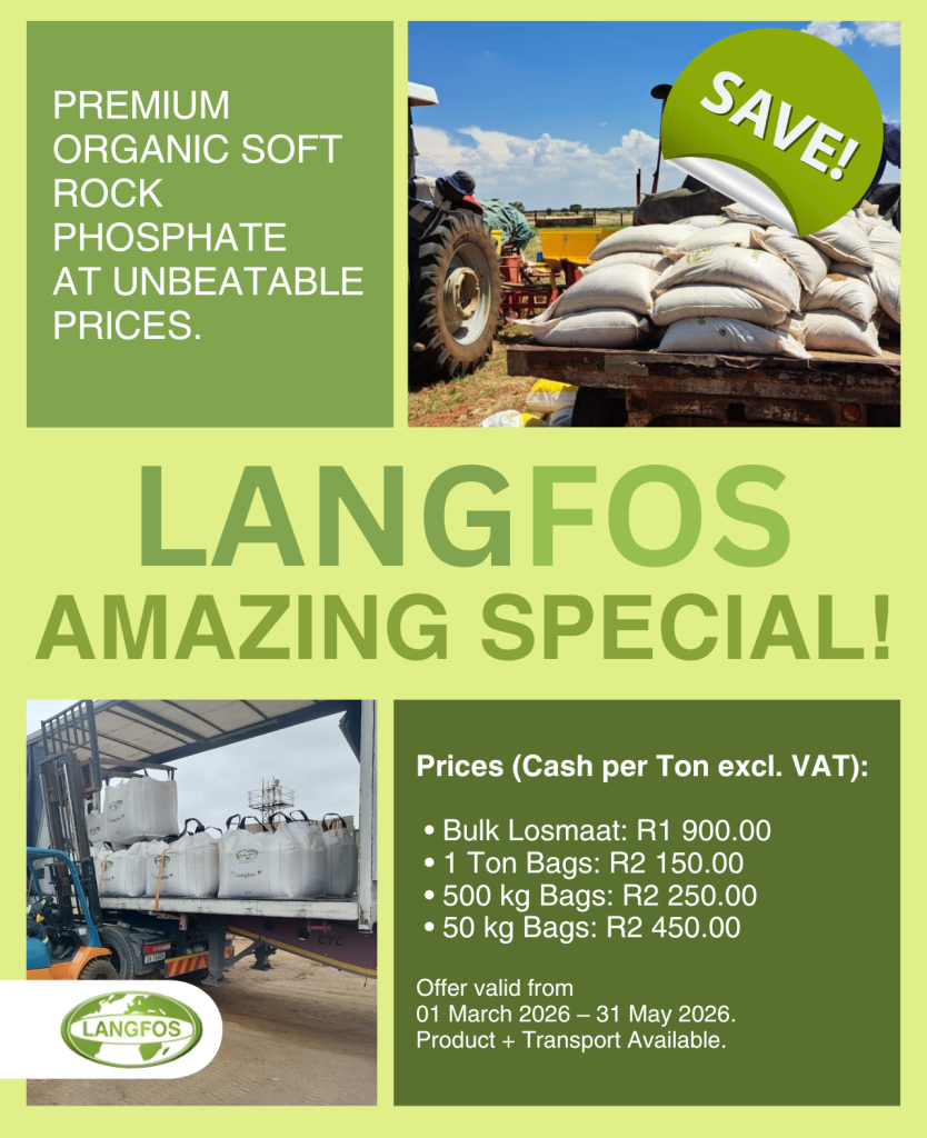 Designed for farmers who prioritise soil health and long-term productivity, Langfos is the gold standard for sustainable agriculture. Whether you require bulk (Losmaat) or convenient bagged options, now is the perfect time to secure your supply at our lowest prices of the year.